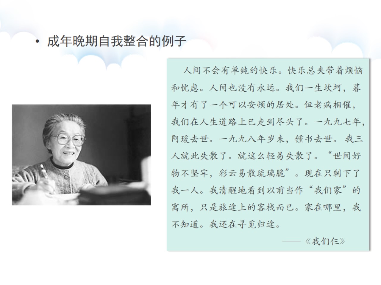 每个阶段都需要进行自我整合, 对自我的理解也可能不断发展变化