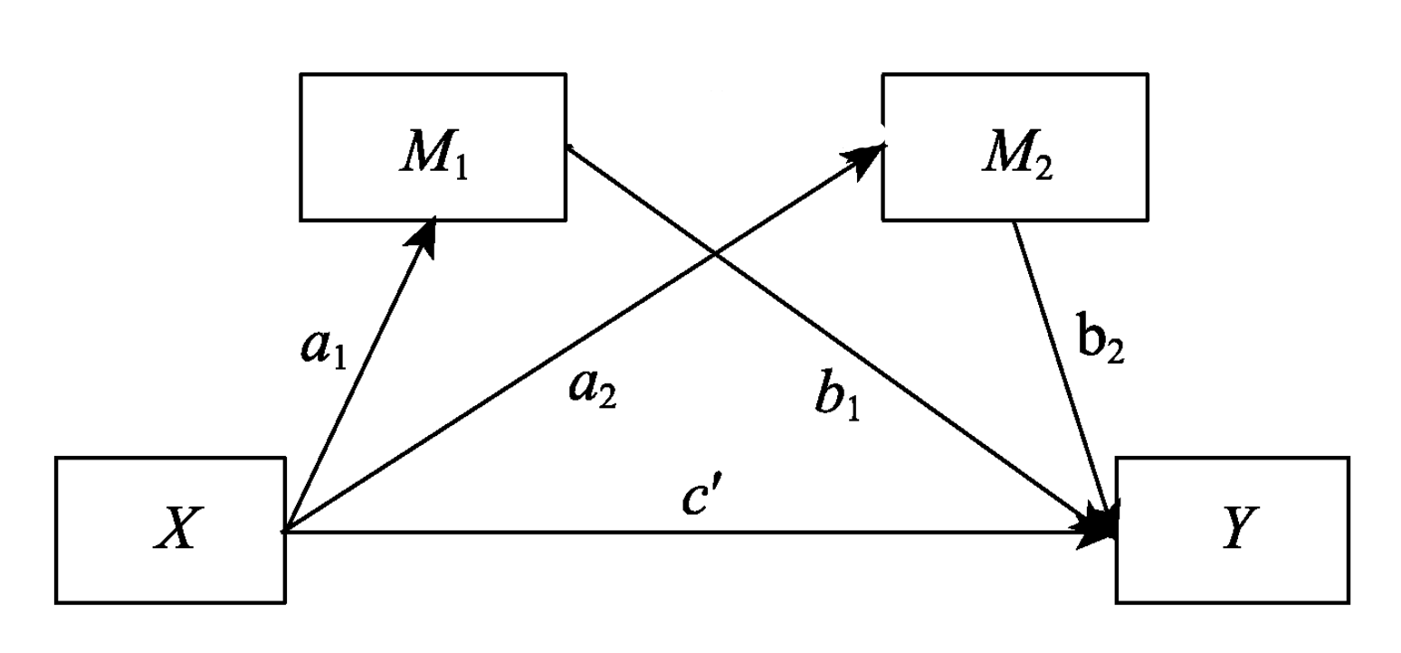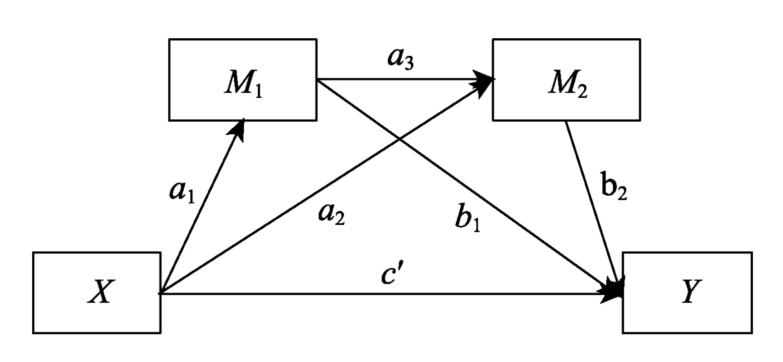 - 链式多重中介模型: 多个中介变量之间有影响关系