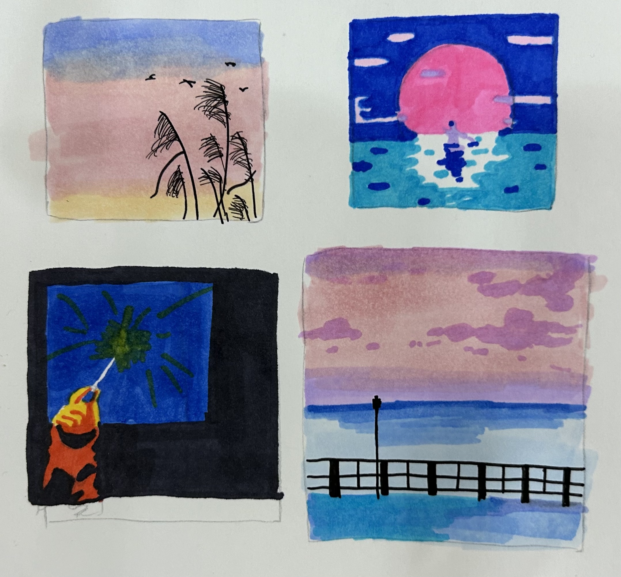 在上学期, 同学们体验了各种不同的绘画材料, 还尝试了折纸和拼豆等手工艺术. 在本学期, 我们更着眼于与”艺术家”的对话: 我们分别邀请了一位 B 站知名的绘画 UP 主和一位在校艺术学大学生, 与同学们分享了他们的绘画经验和技巧, 并带领大家一起创作!此外, 我们还分别与声乐空间和椰丝团联动, 分别举办了欣赏以一位画家为主角的音乐剧和”你画我猜”互动活动, 为同学们带来了更多的艺术体验!