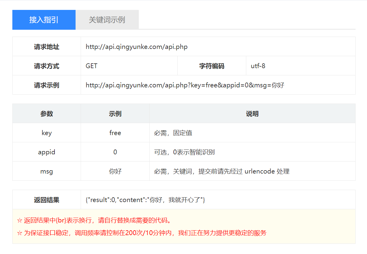 返回值及其类型和描述