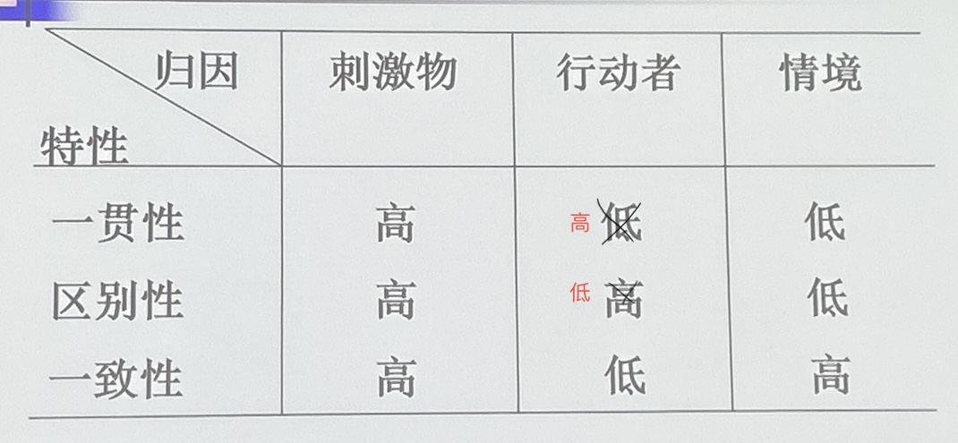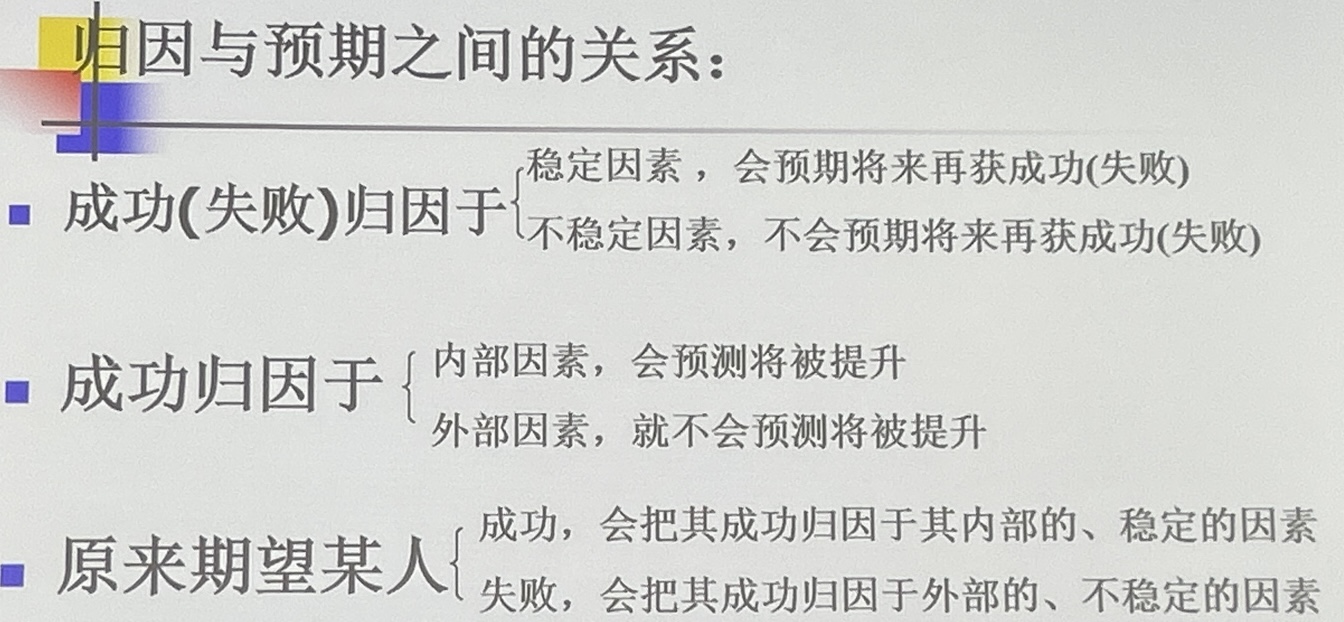 - 归因: 人们对他人或自己的所作所为进行分析,指出其性质或推论其原因的过程,也就是解释和推测他人或自己的行为原因的过程