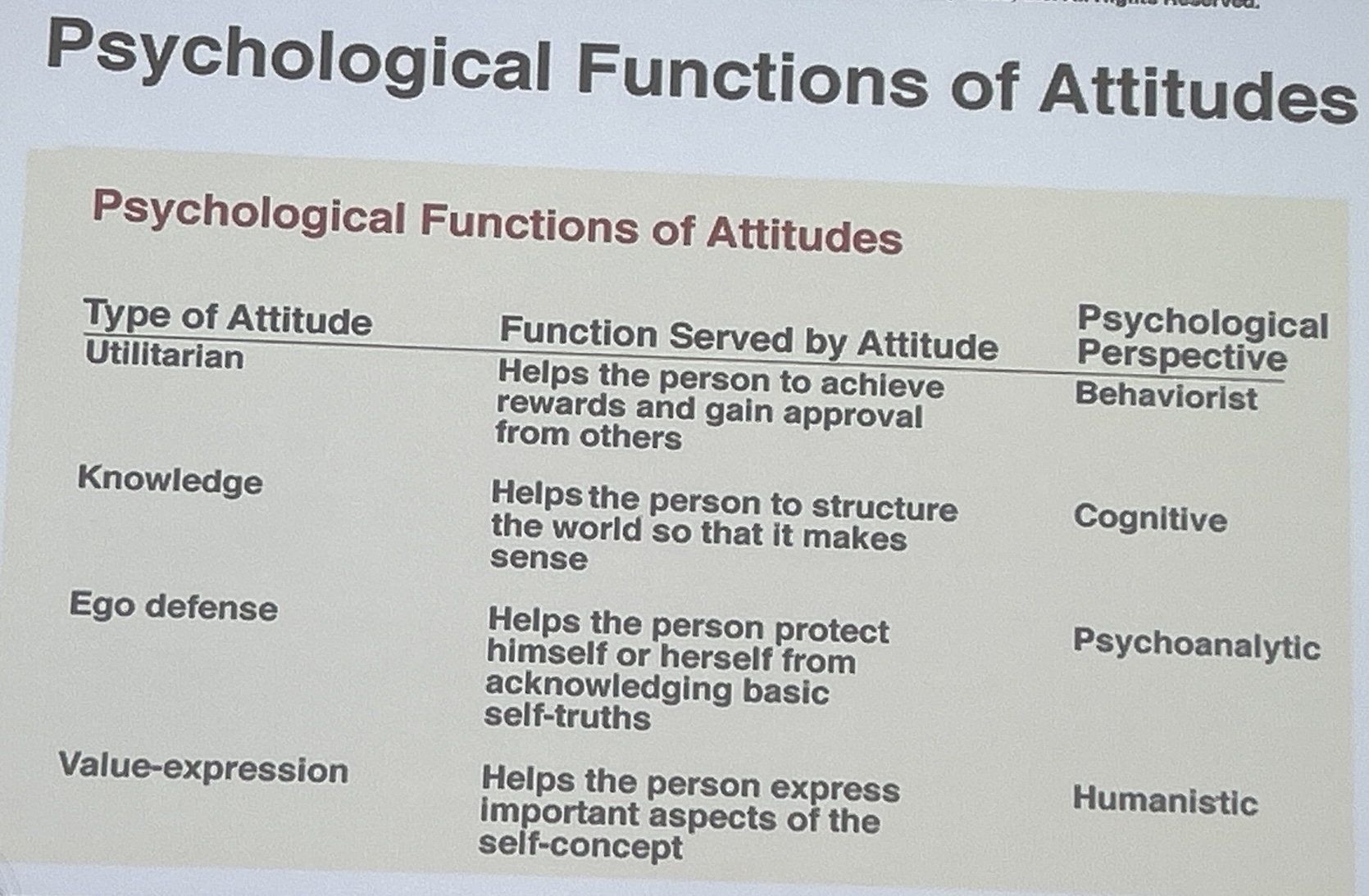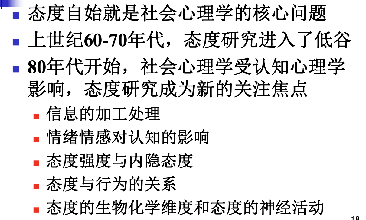 - 态度: 个人对特定对象以一定的方式作出反应时所持的评价性的、较稳定的内部心理倾向