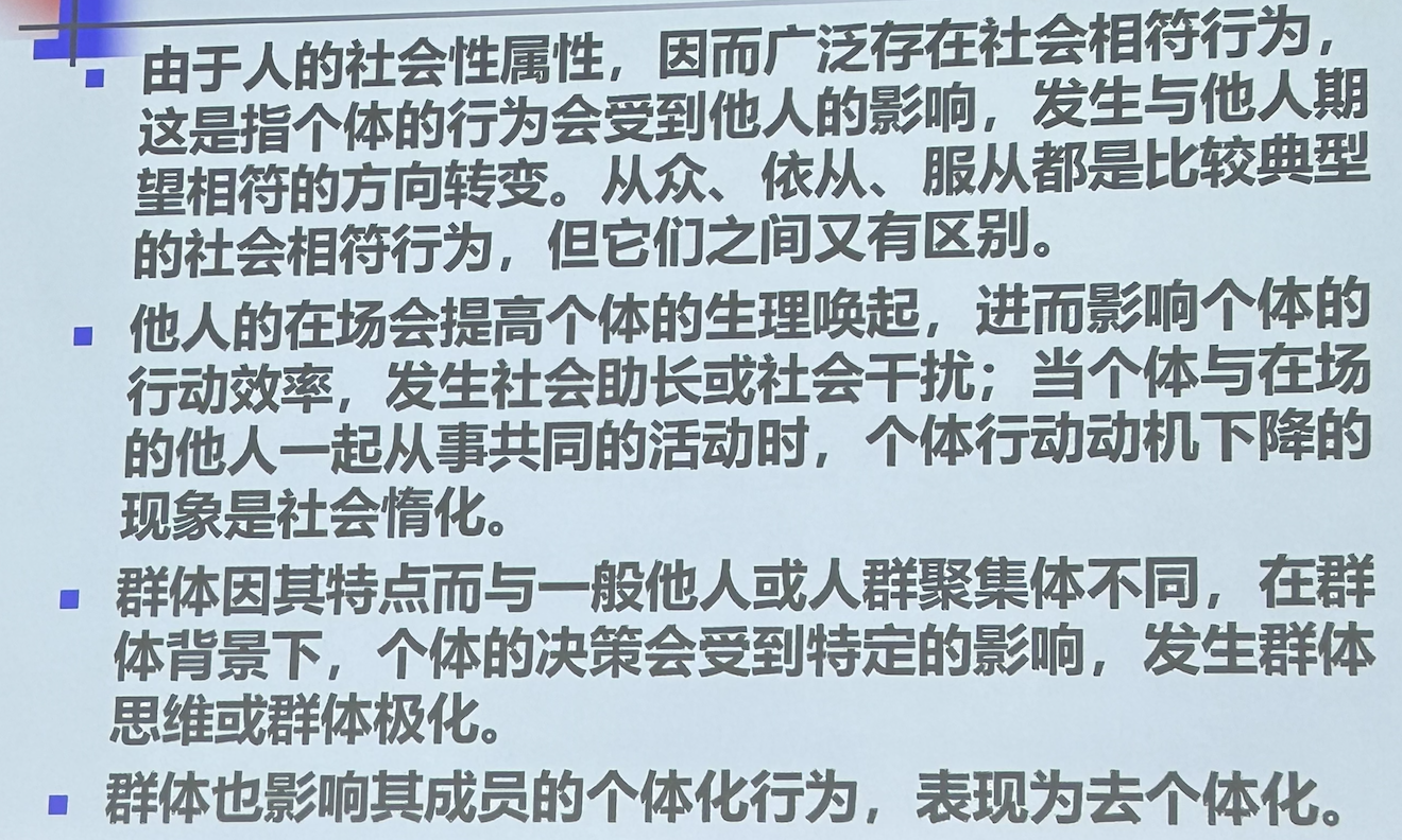 - 从众: 由于多数人的引导或压力,个体的行为和观念向与多数人相一致的方向变化的现象