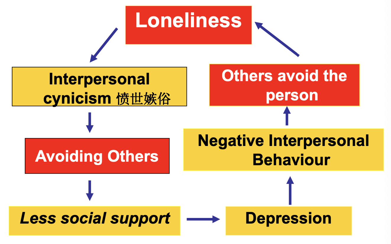 - 孤独: 由于社会关系的缺乏而引起的复杂情感反应