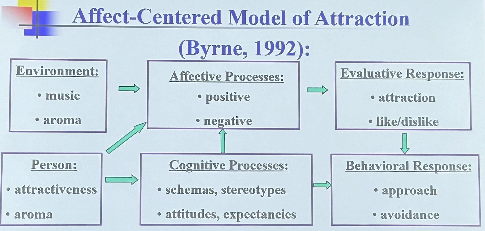- 人际吸引: 个体寻求接近他人的积极的状态, 包括情感、评价、行动三个成分