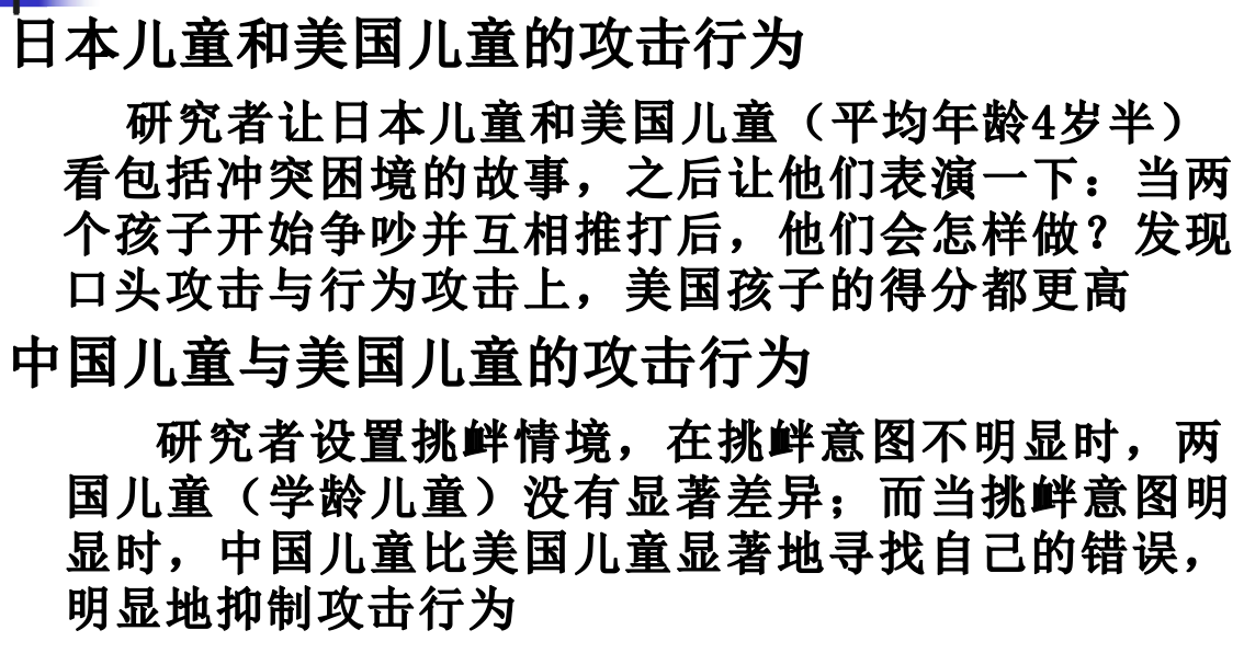 - 比较文化学的社会心理学: 将文化作为一种因素, 探究它对个体行为的影响过程