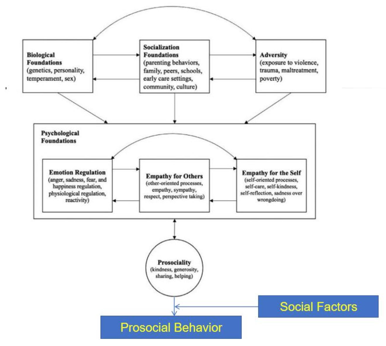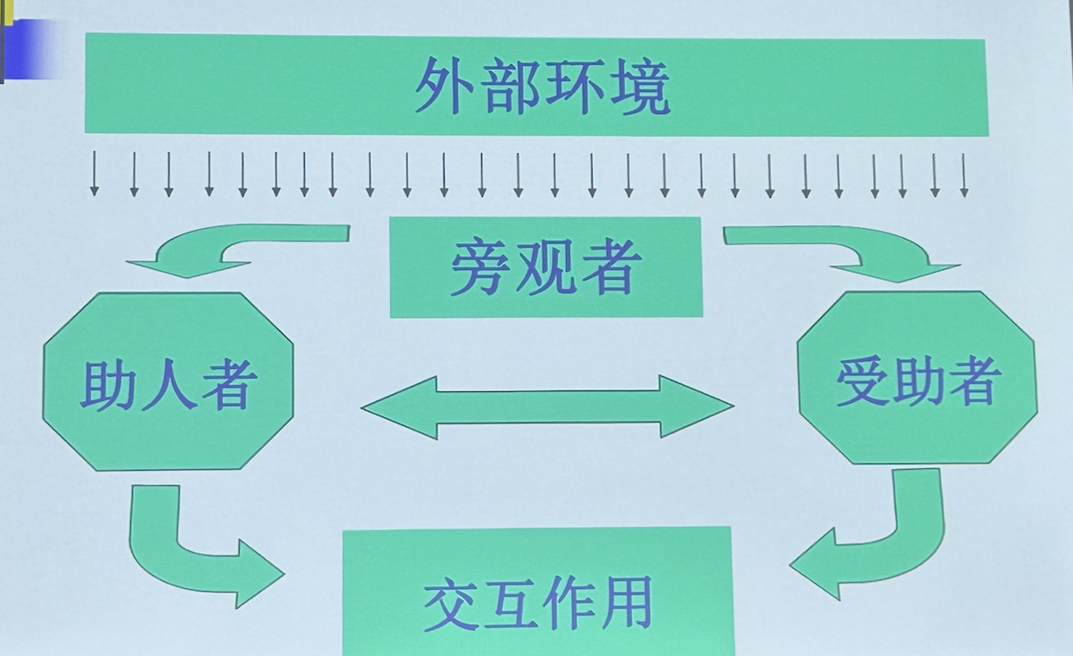 - 亲社会行为: 人们在社会交往中表现出来的一切积极的、符合社会期望的、有利于他人并能促进社会和谐发展的行为及趋向