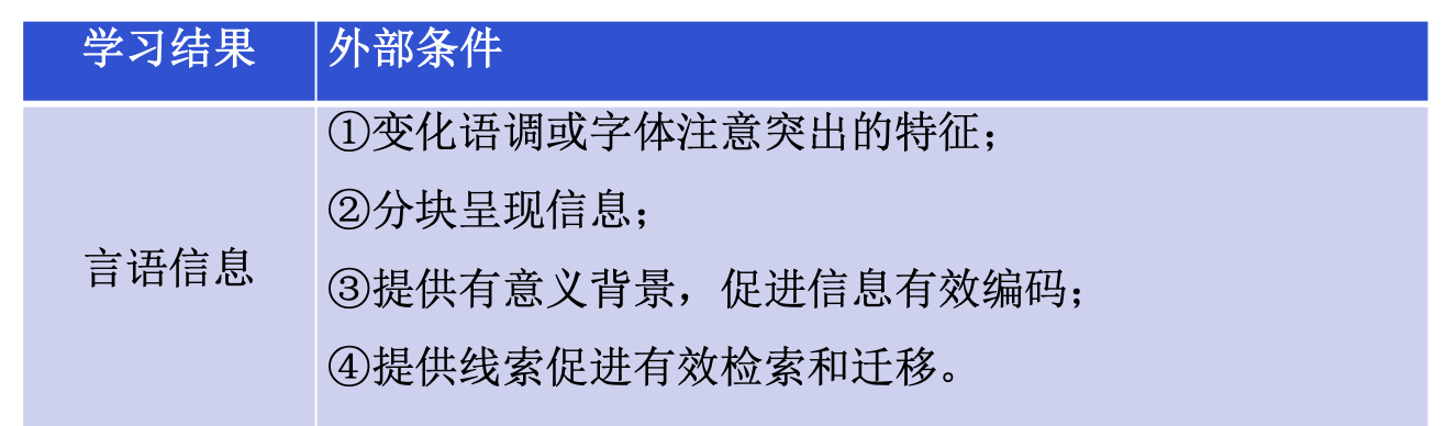 - 情境因素: 学习材料的特性、教师的指导、学习情境的相似性等