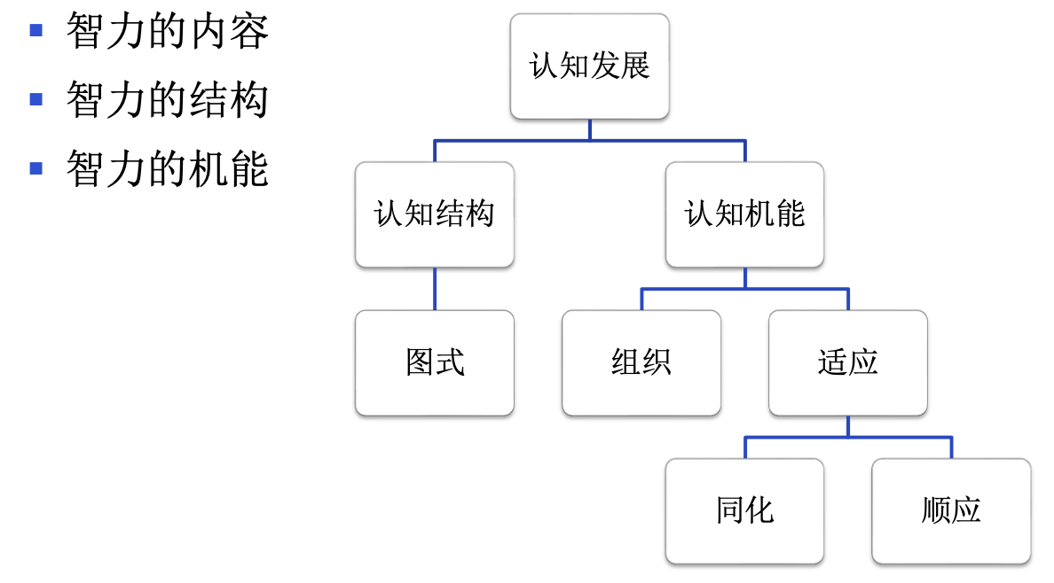 operations:内部的智力或操作如加减乘除、心理旋转; 合格的运算具有同一性、可逆性、补偿性、系统性 - 感知运动阶段